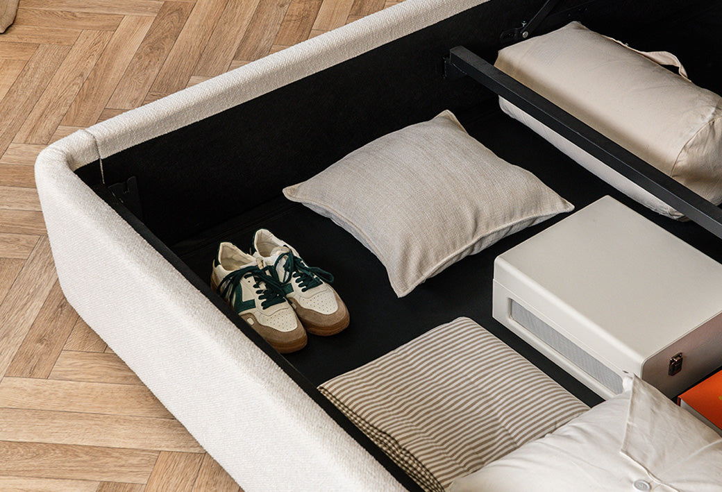 ✓ Dotato di un meccanismo di sollevamento sicuro assistito da robusti cilindri, questo letto offre un facile accesso a uno spazio di conservazione nascosto sotto il materasso. ✓ Grazie al pratico cinturino, sollevare la rete è un gioco da ragazzi, permettendoti di mettere in ordine quello che vuoi senza fatica e in un batter d'occhio. ✓ Per garantire un'igiene ottimale, il nostro letto contenitore è dotato di una tela anti-polvere con cerniera, che conserva i tuoi effetti personali evitando l'accumulazione di polvere. ✓ Disponibile in diverse dimensioni, il nostro letto contenitore offre un generoso volume di stoccaggio che va da 460 a 970 litri.
