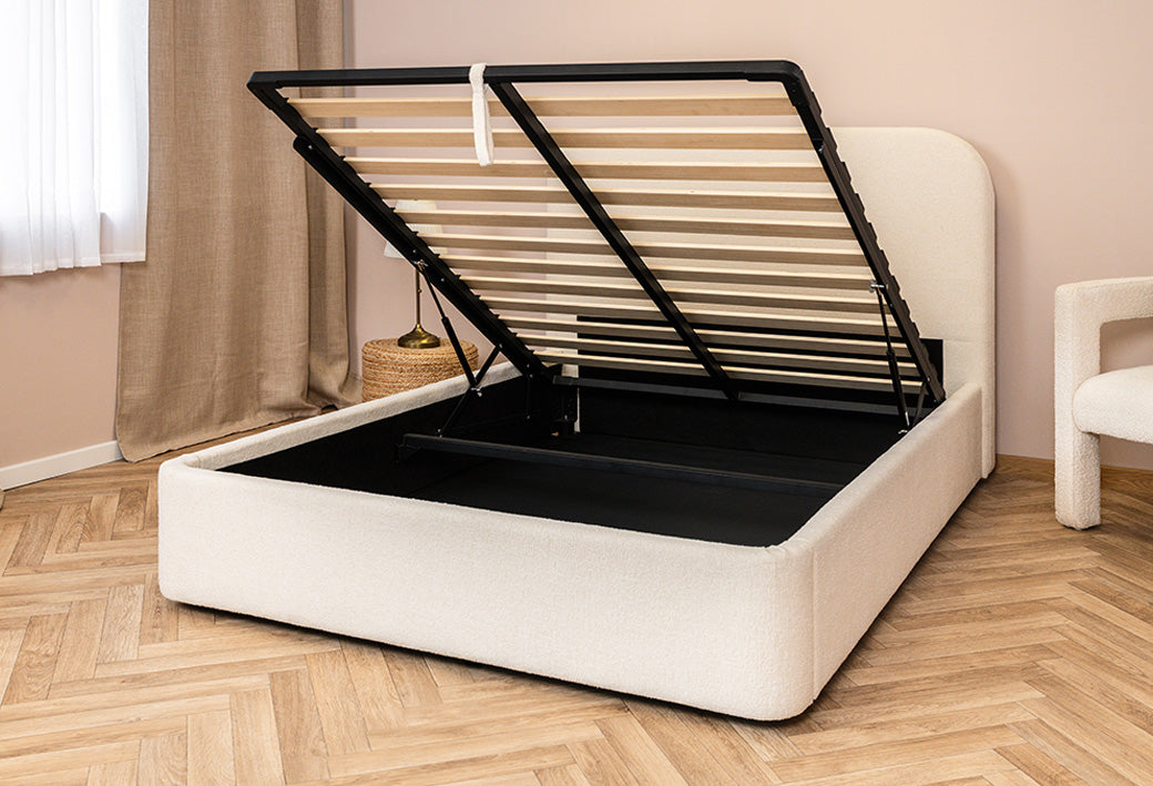 Il letto contenitore Nova combina eleganza, stile e durevolezza. Realizzato in un design moderno, offre uno spazio di stoccaggio intelligente per una camera allo stesso tempo chic e ben organizzata. La sua solida struttura e il suo rivestimento in tessuto beige aggiungono un tocco di eleganza senza tempo alla tua zona notte, assicurando massimo comfort e praticità.